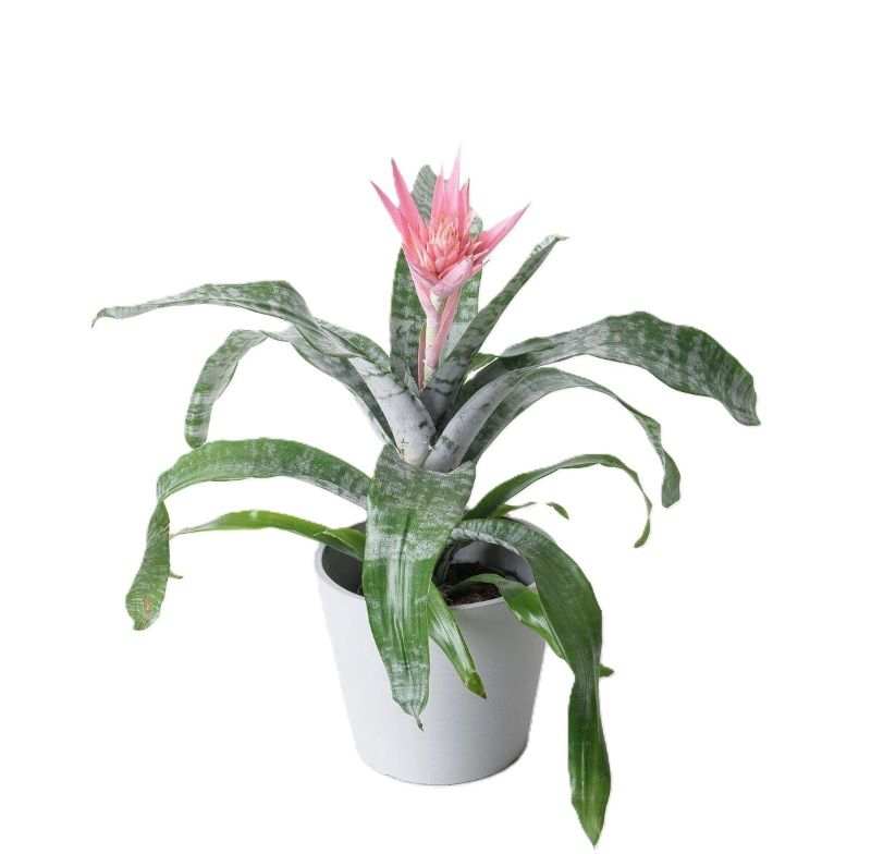Εντυπωσιακό φυτό εσωτερικού χώρου με ιδιαίτερη εξωτερική εμφάνιση και καταγωγή από την Βραζιλία. Στο φυσικό της τροπικό περιβάλλον αναπτύσσεται σαν επίφυτο επάνω σε κορμούς δέντρων. Είναι χαρακτηριστικά τα βράκτια άκαμπτα και στενόμακρα φύλλα του. Αυτά τα φύλλα είναι ροζ χρώμα και αναμεσά τους φυτρώνει το πραγματικό λουλούδι της αιχμέας που είναι μπλε αποχρώσεων και διατηρείται για αρκετό διάστημα επάνω στο φυτό.