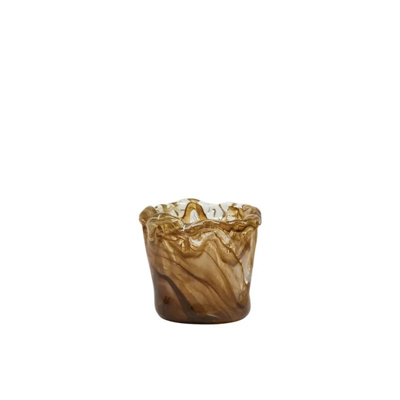 Κηροπήγιο φυσητό γυαλί καφέ/μελί 9cm