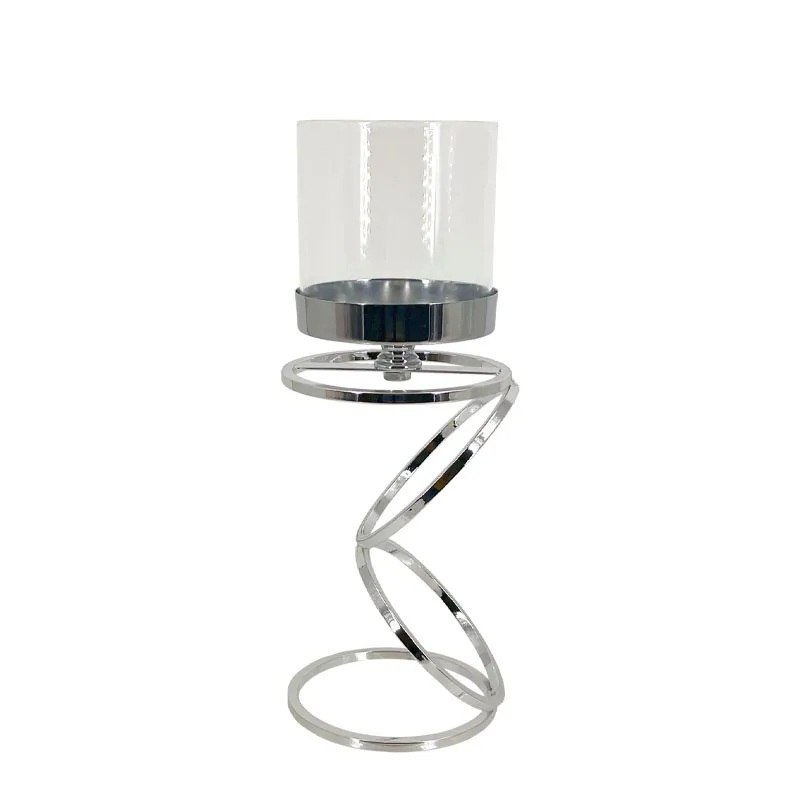 Κηροπήγιο μεταλλικό με γυαλί μοντέρνοι κύκλοι ασημί Υ36cm
