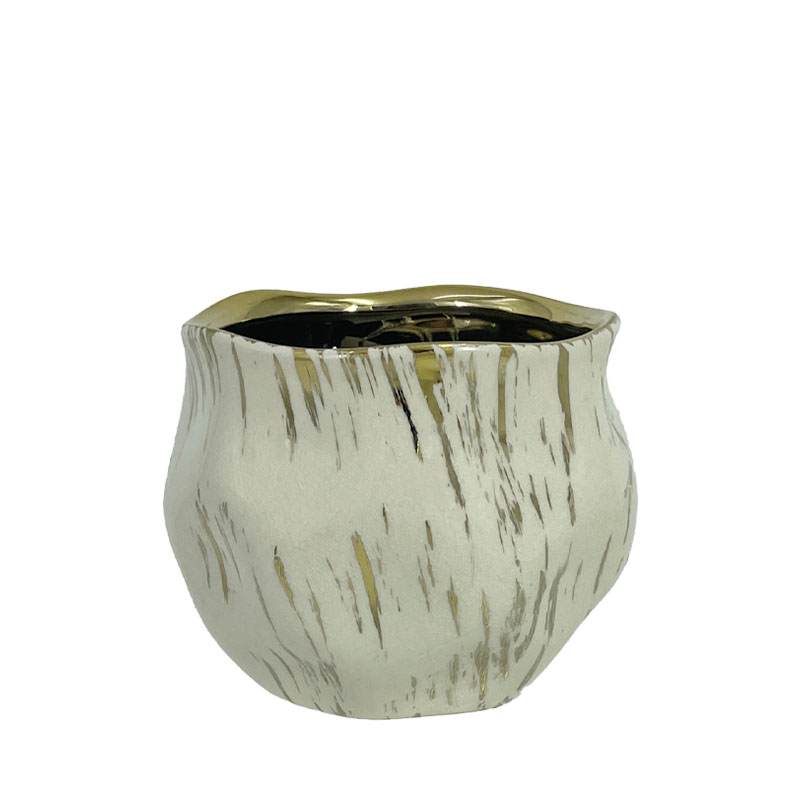 Κασπώ υαλωμένο πουγκί με βαθουλώματα (σερά 3ων) εκρού/χρυσό μεσαίο