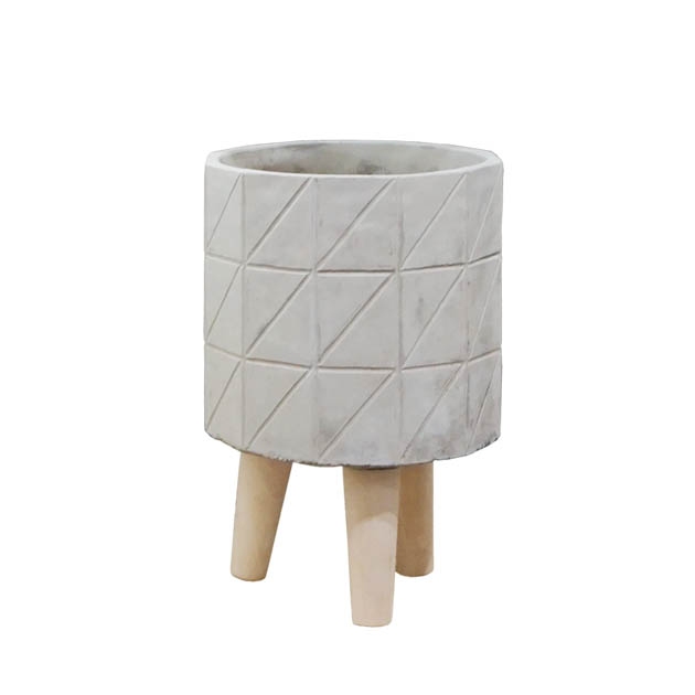 Τσιμεντένιο κασπώ γραμμές με ξύλινα πόδια γκρί 23,5cm