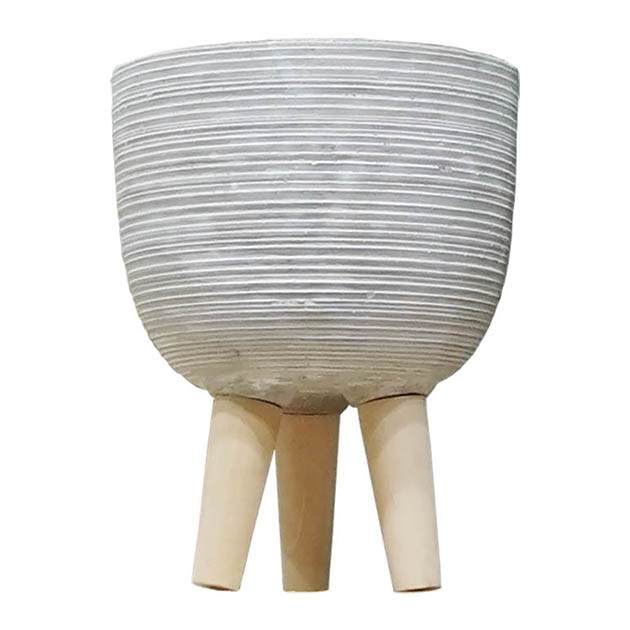 Τσιμεντένιο κασπώ γραμμές με ξύλινα πόδια γκρί 42,5cm