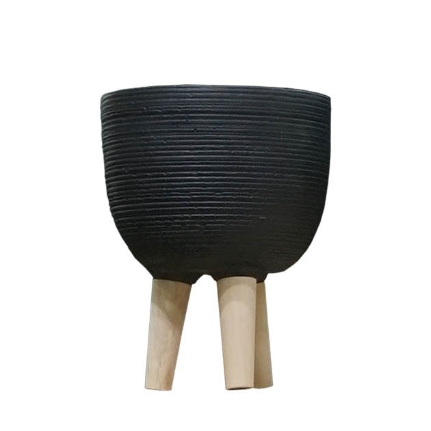 Τσιμεντένιο κασπώ γραμμές με ξύλινα πόδια μαύρο 33,5cm