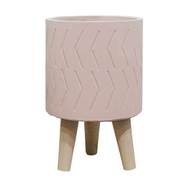 Τσιμεντένιο κασπώ γραμμές με ξύλινα σάπιο μήλο 28,5cm