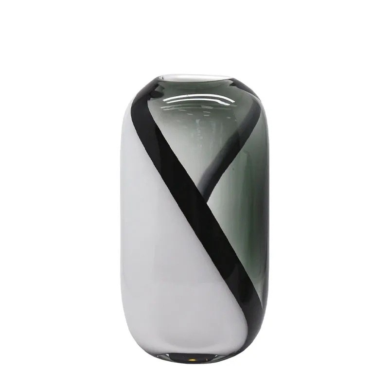 Βάζο φυσητό γυαλί πομπέ γκρί/λευκό/μαύρο 32cm