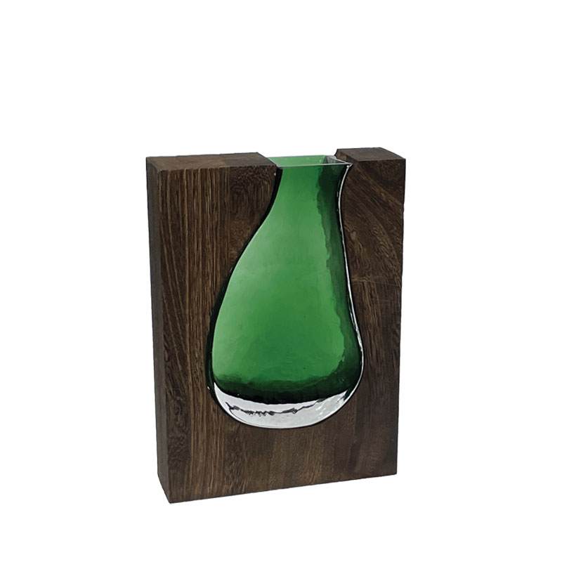 Βάζο γυάλινο με ξύλινη βάση πράσινο 24cm